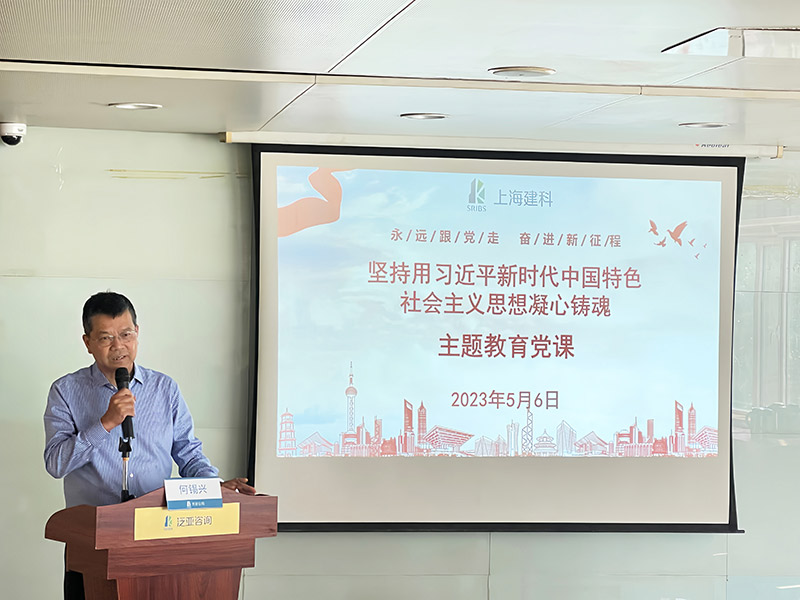 按照建科集團(tuán)黨委關(guān)于學(xué)習(xí)貫徹習(xí)近平新時(shí)代中國(guó)特色社會(huì)主義思想主題教育工作的統(tǒng)一部署,5月5日至6日,集團(tuán)黨委委員、副總裁、天津咨詢董事長(zhǎng)何錫興深入天津咨詢所屬泛亞公司開展調(diào)研,并為全體黨員講題為《堅(jiān)持用習(xí)近平新時(shí)代中國(guó)特色社會(huì)主義思想凝心鑄魂》主題教育黨課。