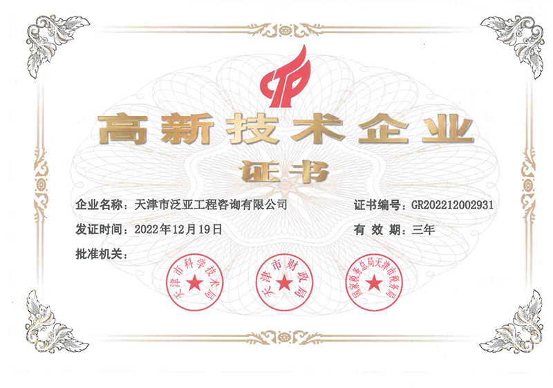 近日,天咨公司下屬泛亞公司順利通過國家高新技術企業(yè)認定,被天津市科學技術局、天津市財政局、國家稅務總局天津市稅務局授予《高新技術企業(yè)證書》,正式獲批國家高新技術企業(yè)。