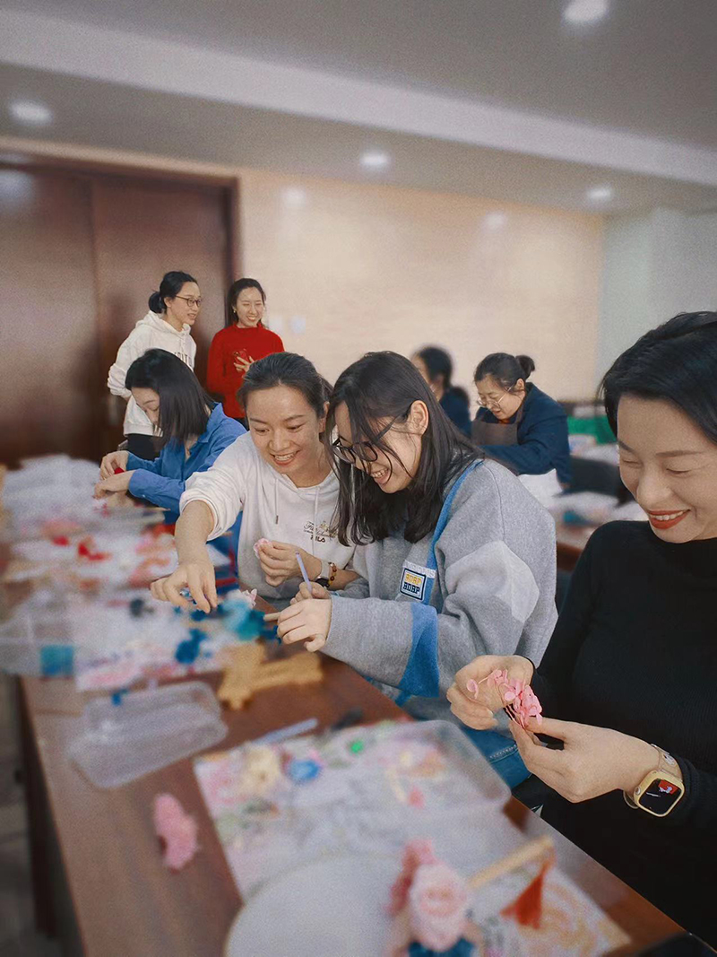 3月8日,工會組織女職工開展“時光不負、與美相約”—國潮古風文化團扇DIY活動。來自各部門的女職工們圍坐在一起,融合創意、交流構思,將象征著永不凋謝的美好的永生花與團扇結合,在親手制作中感受古風之美,在談笑盈然間增進友誼,讓大家在感受美、欣賞美、創造美的過程中度過一個愉快的婦女節。