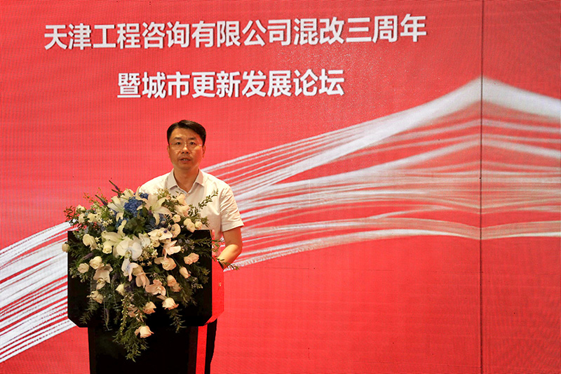 河西區(qū)委常委、區(qū)委統(tǒng)戰(zhàn)部部長、常務(wù)副區(qū)長崔振平致辭。代表河西區(qū),對城市更新論壇開幕和天津咨詢混改三周年表示熱烈祝賀!對各位領(lǐng)導(dǎo)、各位嘉賓一直以來給予河西發(fā)展的關(guān)心、支持表示衷心感謝!天津咨詢作為河西區(qū)內(nèi)重點企業(yè),自混改以來,充分發(fā)揮自身在城市建設(shè)、管理和運行服務(wù)領(lǐng)域的突出優(yōu)勢,扎根河西、深耕發(fā)展,先后參與天津設(shè)計之都核心區(qū)柳林街區(qū)城市更新、老舊小區(qū)改造、市容環(huán)境整治等多個重大項目,在全市軌道交通、基礎(chǔ)設(shè)施、城市綠化等領(lǐng)域發(fā)揮了重要作用,成為助推全市經(jīng)濟社會高質(zhì)量發(fā)展的重要力量。希望一如既往地關(guān)心支持河西,分享更多城市更新和城市建設(shè)管理方面的真知灼見,提供更多全國各地的好經(jīng)驗、好做法,共同為推動全市高質(zhì)量發(fā)展出力。我們將秉持“無事不擾、有求必應(yīng)”理念,持續(xù)優(yōu)化營商環(huán)境,為包括天津咨詢在內(nèi)的廣大區(qū)內(nèi)企業(yè)發(fā)展保駕護航。