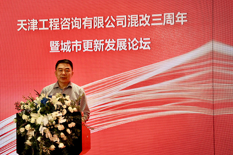 上海建科集團黨委委員、副總裁、天津咨詢董事長何錫興主持混改三周年活動