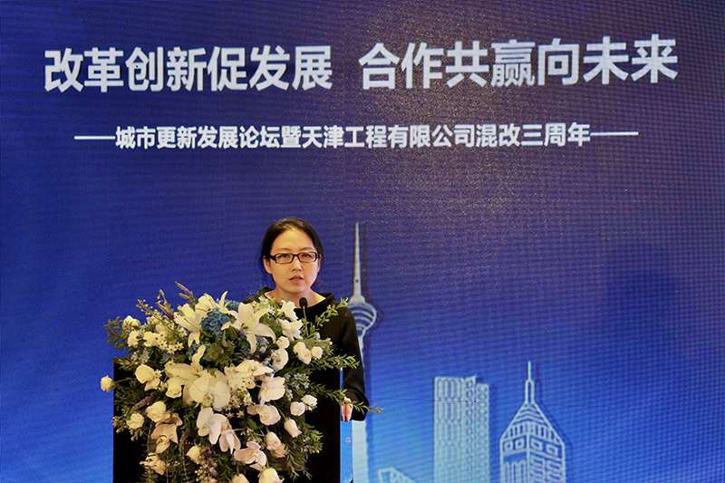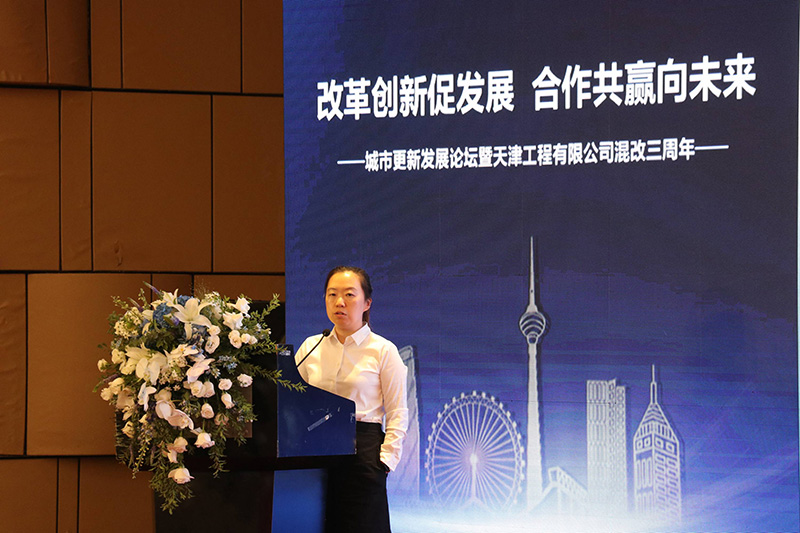 天津市國資委改革處副處長袁薔致辭。代表市國資委向天津咨詢混改三周年表示祝賀,也向關(guān)心和支持天津國資國企改革發(fā)展的各界朋友表示感謝。天津咨詢混改三年引進了先進的管理理念和經(jīng)營機制,實現(xiàn)了國有資產(chǎn)的保值增值,扎根天津、服務(wù)天津,加深了津滬兩地國資國企之間的合作與共贏。希望天津咨詢保持向好發(fā)展。不斷拓寬經(jīng)營思路,健全經(jīng)營機制,努力挖掘自身優(yōu)勢,提高企業(yè)核心競爭力,為混改后天津國資參股企業(yè)保持更好更快發(fā)展樹立典型。希望天津咨詢服務(wù)天津發(fā)展。主動融入和服務(wù)“十項行動”,持續(xù)推進“三新”“三量”工作,抓住有利時機,充分發(fā)揮在城市更新、資產(chǎn)盤活等方面的咨詢技術(shù)優(yōu)勢,為天津的城市建設(shè)和經(jīng)濟發(fā)展“添秤”。希望天津咨詢發(fā)揮紐帶作用。繼續(xù)穩(wěn)步推進改革,將上海國企的先進理念引入天津,進一步發(fā)揮好上海國資和天津國資之間的紐帶作用,為推動雙方互利共贏做出積極貢獻。