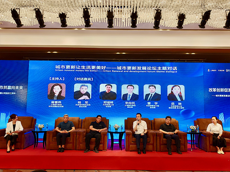城市更新發(fā)展論壇圍繞城市更新政策引領(lǐng)、新技術(shù)應(yīng)用等領(lǐng)域,共同探討城市更新建設(shè)的發(fā)展新理念、新模式、新技術(shù)。上海建科集團黨委委員、副總裁李向民、天津城市規(guī)劃總院城市更新分院院長張娜、天津咨詢副總經(jīng)理、總工程師岳琳分別就《城市更新之上海建科研究與實踐》《實施城市更新行動,共劃城市發(fā)展轉(zhuǎn)型》《天津市城市更新產(chǎn)業(yè)策劃及投融資平衡研究》作專題演講。圍繞城市更新讓生活更美好主題,上海建科集團副總裁李向民、天津城市規(guī)劃總院副總經(jīng)理楊軍、天津房鑒設(shè)計院總經(jīng)理曹宇、天津城市更新發(fā)展公司總經(jīng)理鄭建峰、天津咨詢副總經(jīng)理、總工程師岳琳進行“主題對話”。上海建科集團市場發(fā)展部總經(jīng)理葛曹燕主持城市更新發(fā)展論壇。