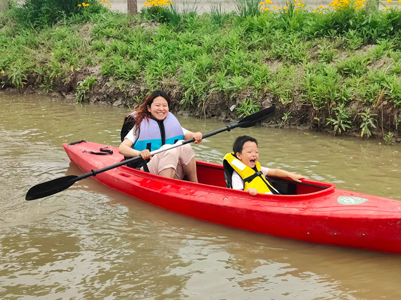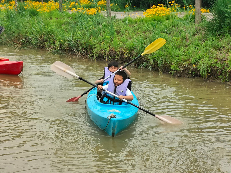 濕地皮劃艇項(xiàng)目將上午的活動(dòng)推向高潮。大家躍上皮劃艇,在粼粼波光中揮槳前行,或你追我趕,上演一場(chǎng)酣暢淋漓的水上競(jìng)速;或悠然自得,沉醉于濕地的如畫(huà)風(fēng)光。水面上歡笑聲與加油聲此起彼伏,奏響了活力四溢的夏日樂(lè)章。