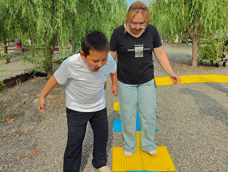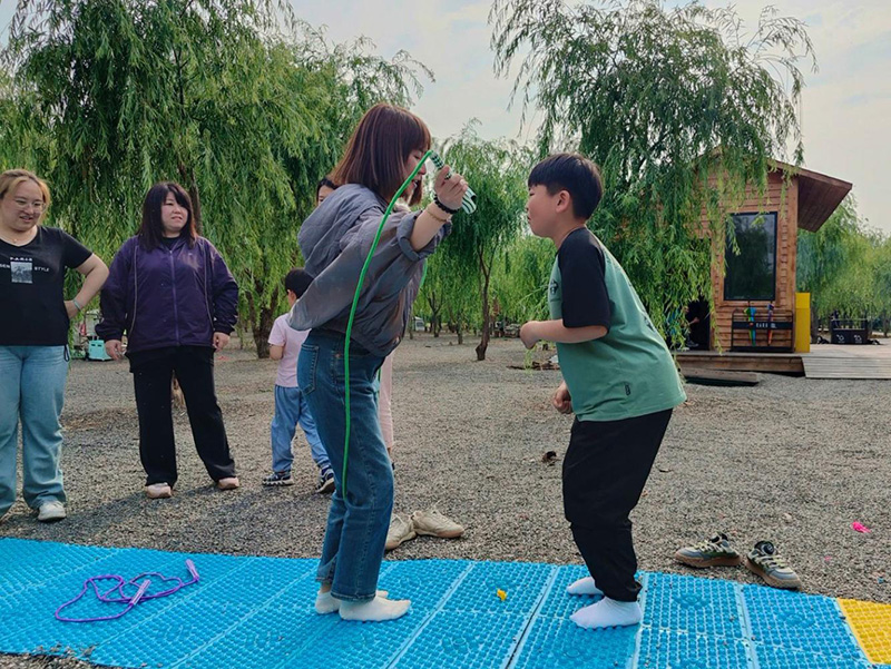 最后的指壓板大戰(zhàn)搖身變?yōu)橐粓?chǎng)“童年闖關(guān)大挑戰(zhàn)”。大家赤足踏上指壓板,挑戰(zhàn)跳繩、跳格子等經(jīng)典童年游戲任務(wù)。腳底雖傳來(lái)陣陣酸爽刺激,臉上卻始終綻放著燦爛笑容,咬牙堅(jiān)持。團(tuán)隊(duì)成員們?cè)谝慌詩(shī)^力吶喊助威,互相鼓舞打氣,齊心協(xié)力共闖難關(guān),在歡笑與互助中凝聚起強(qiáng)大的團(tuán)隊(duì)力量,將活動(dòng)氛圍推向頂點(diǎn)。
